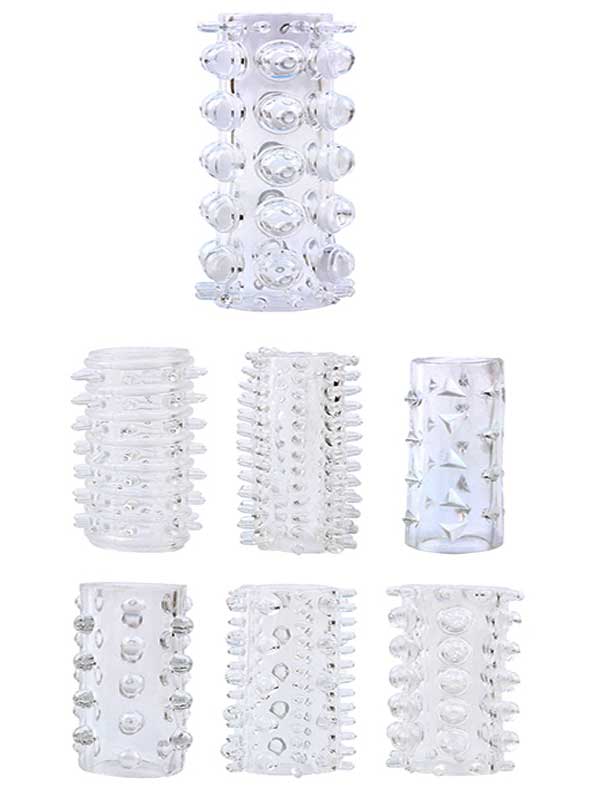 7 farklı modelde, birbirinden farklı doku ve tırtıklara sahip, her boya uygun, esnek ve yumuşak, partnerinizi daha fazla uyarmak için tasarlanmış penis kılıf setidir.